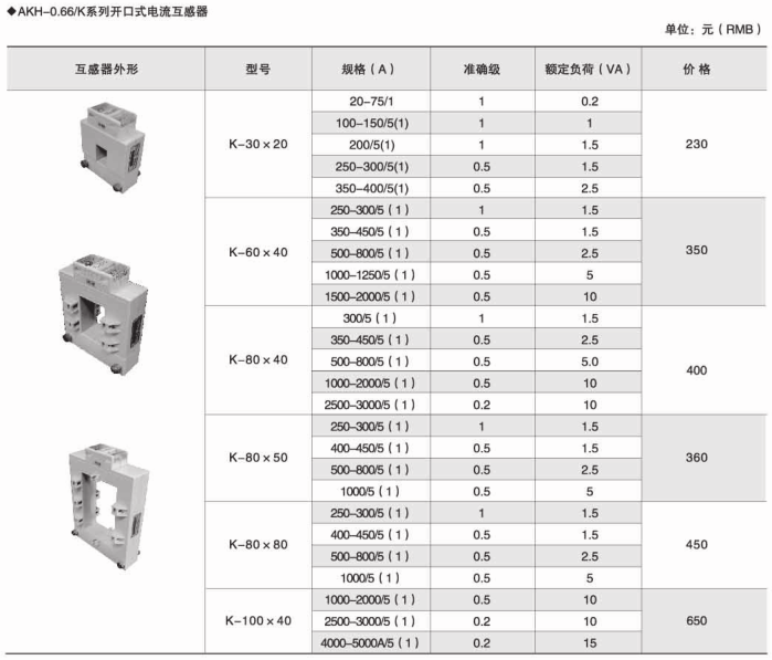 具體型號(hào):AKH-0.66/K K-80*50 800AKH-0.66/K開口式電流互感器