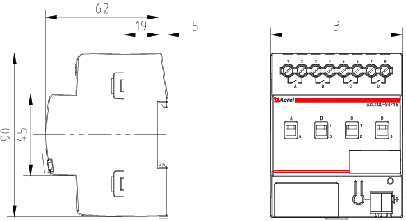 產品型號 回路數 模塊寬度(B)mm 單回路額定容量