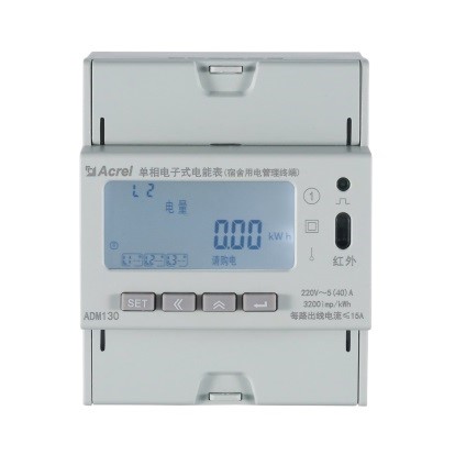 DDSY1352-xDM 單相電子式電能表(宿舍用電管理終端)主要用于計(jì)量單相交流用電,終端可以一路火線進(jìn)線,三路火線并聯(lián)輸出分別計(jì)量照明、插座、空調(diào)回路,可進(jìn)行預(yù)付費(fèi)控制,并可對(duì)五路出線分別進(jìn)行負(fù)載控制和時(shí)間控制并支持近30條跳閘事件記錄存儲(chǔ)功能,管理終端支持485和紅外通訊,可方便地實(shí)現(xiàn)遠(yuǎn)程抄表、遠(yuǎn)程充值、遠(yuǎn)程控制等功能。