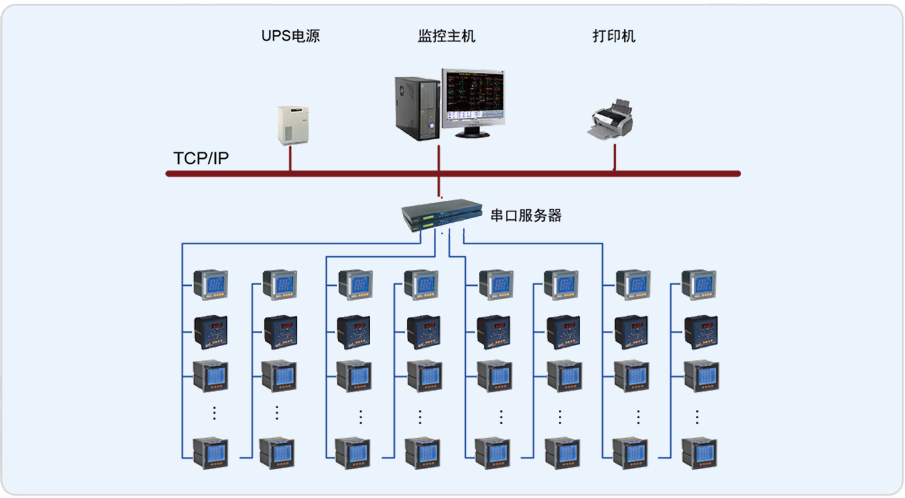 柳州麗笙酒店電能管理系統(tǒng)的監(jiān)控范圍為分布在兩個配電室的67只PZ48-AI3/C 儀表。經(jīng)過節(jié)能改造后進線采用多功能表,各支路采用電流表。