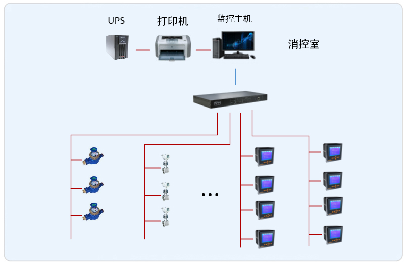 系統(tǒng)采用Acrel-5000型能耗監(jiān)控系統(tǒng),整個(gè)系統(tǒng)采用網(wǎng)絡(luò)分布式結(jié)構(gòu),監(jiān)控主機(jī)位于消防監(jiān)控室中,所有配電回路均配備安科瑞電力儀表PZ系列,以及一些水表。該項(xiàng)目實(shí)現(xiàn)了銀川建發(fā)大閱城?凱悅酒店能耗系統(tǒng)的智能管理,所有監(jiān)控設(shè)備均通過(guò)屏蔽雙絞線至后臺(tái)的通訊管理機(jī),從而實(shí)現(xiàn)遠(yuǎn)程監(jiān)控。